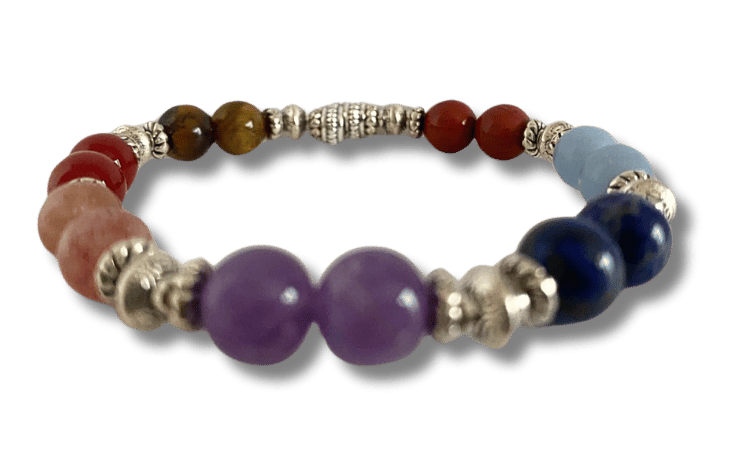 Votre Bracelet de Guérison Karmique Reiki est conçu avec 7 pierres naturelles, harmonisées avec vos 7 centres d’énergies principaux de votre corps (vos Chakras) :