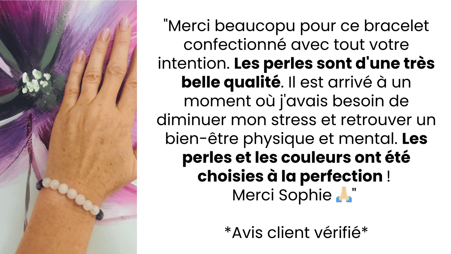 Vraiment, j’ai hâte d’entendre comment mon bracelet impactera votre vie, et vous offrira un moyen immédiat de ressentir les bienfaits de l’Énergie de Guérison Reiki, tout en renforçant votre connexion avec l’Univers.
