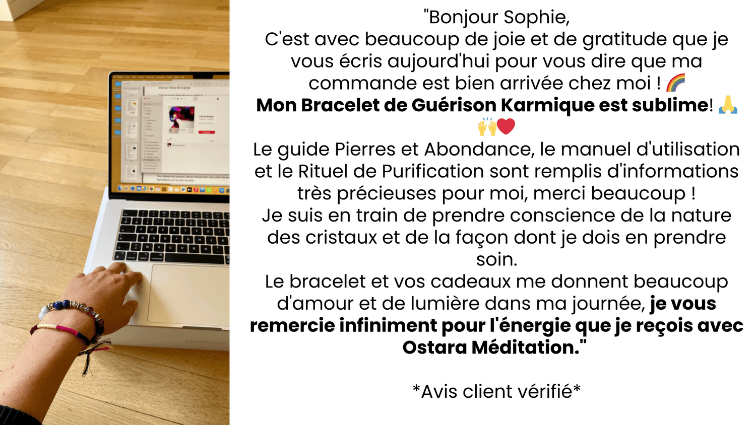 Et je suis heureuse de vous offrir l’opportunité de recevoir mon Bracelet de Guérison Karmique Reiki directement livré dans votre boîte aux lettres.